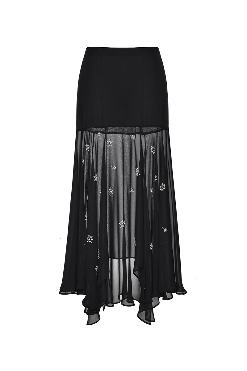 تنورة ماكسي من الحرير الشفاف باللون الأسود