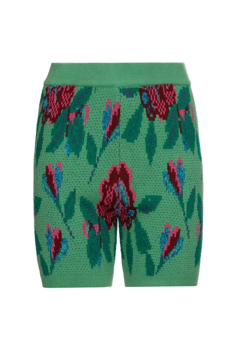 شورت أخضر بتفاصيل زهور من مزيج الصوف والموهير