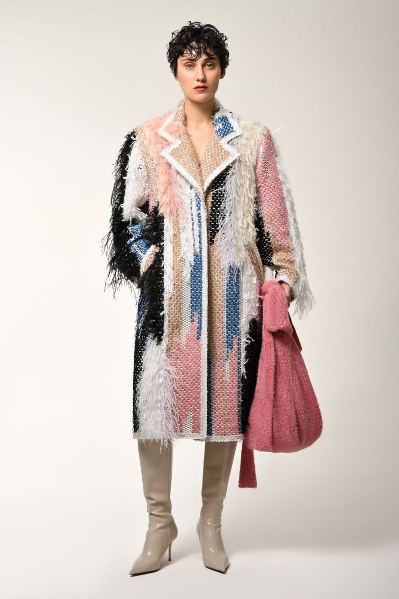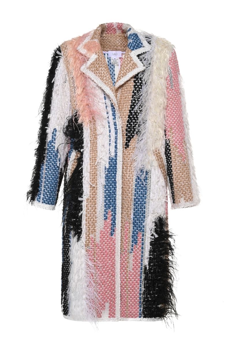 معطف كبير الحجم مع وسائد كتف باللون متعدد الألوان الفاتح