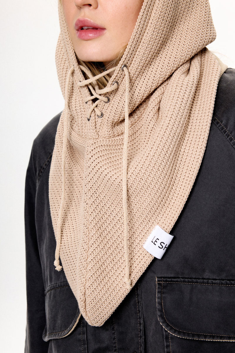 - يمكن تعديل عرض غطاء الرأس باستخدام خيط قطني
