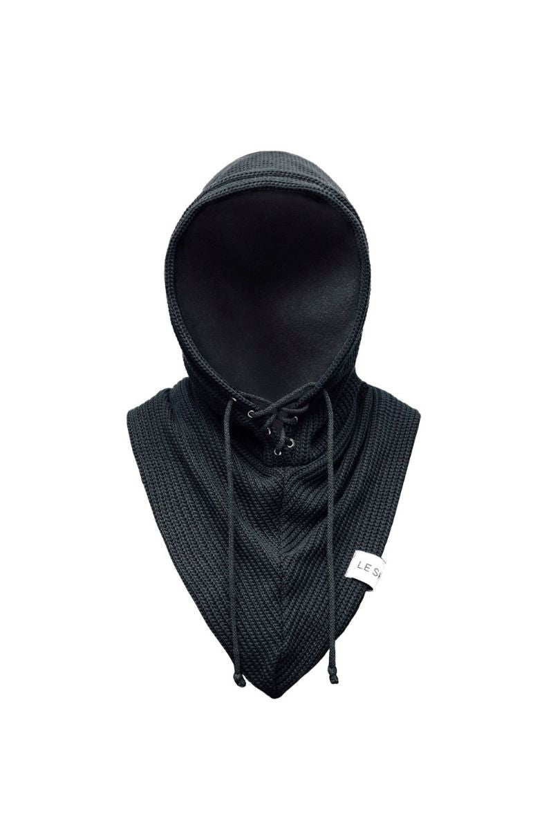 - قناع وجه أسود موديل 1.0، قناع وجه أسود مخيط يدويًا، غطاء رأس مبطن بالفرو من الداخل