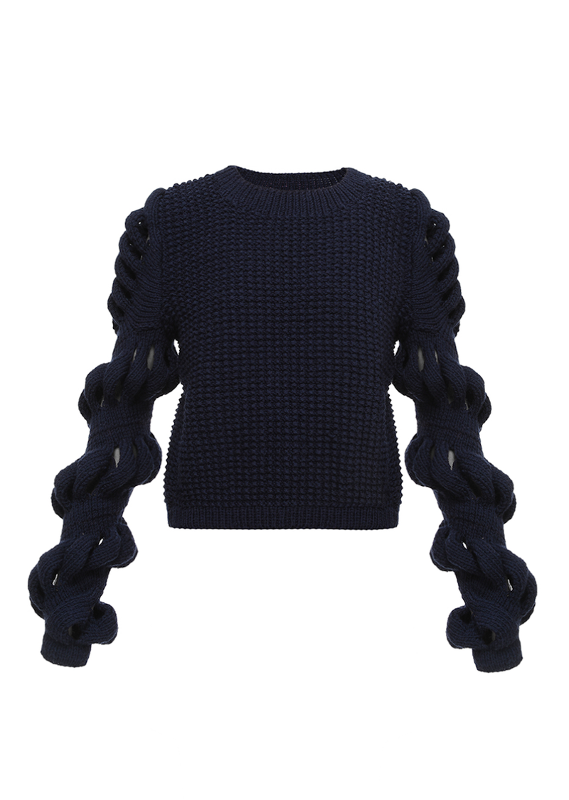 سترة سوداء من مزيج الصوف محبوكة يدويًا