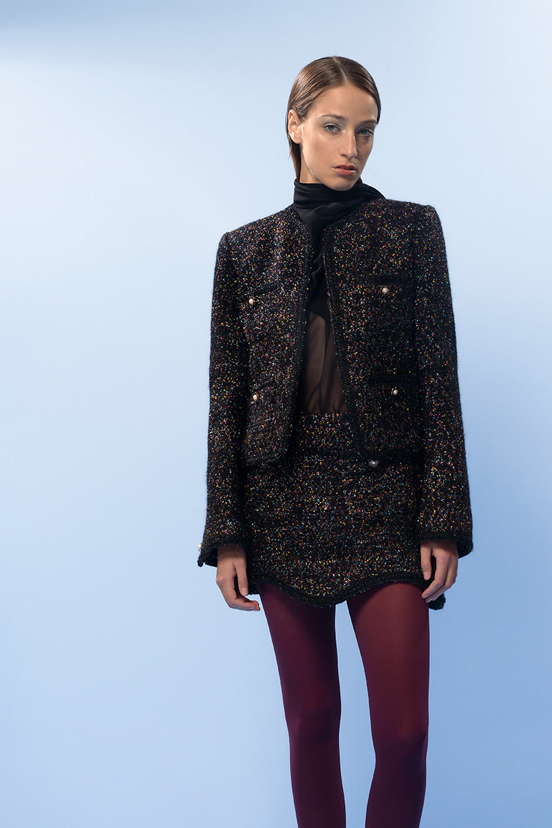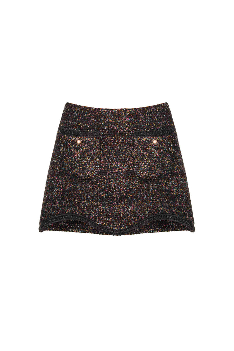 تنورة قصيرة من الصوف باللون البني المنقوش