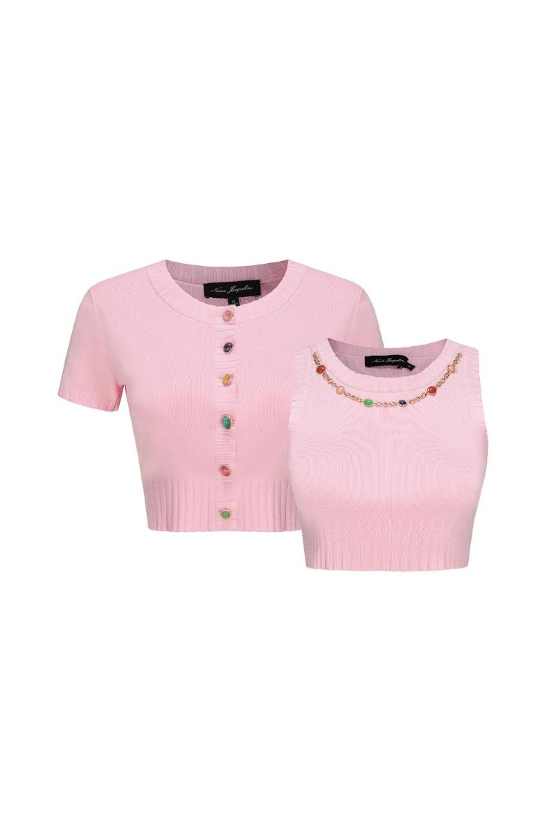مجموعة كنزة كينيدي باللون الوردي