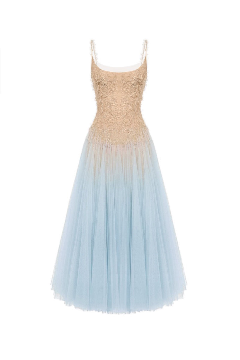 فستان ميدي من الدانتيل باللون الأزرق أومبري