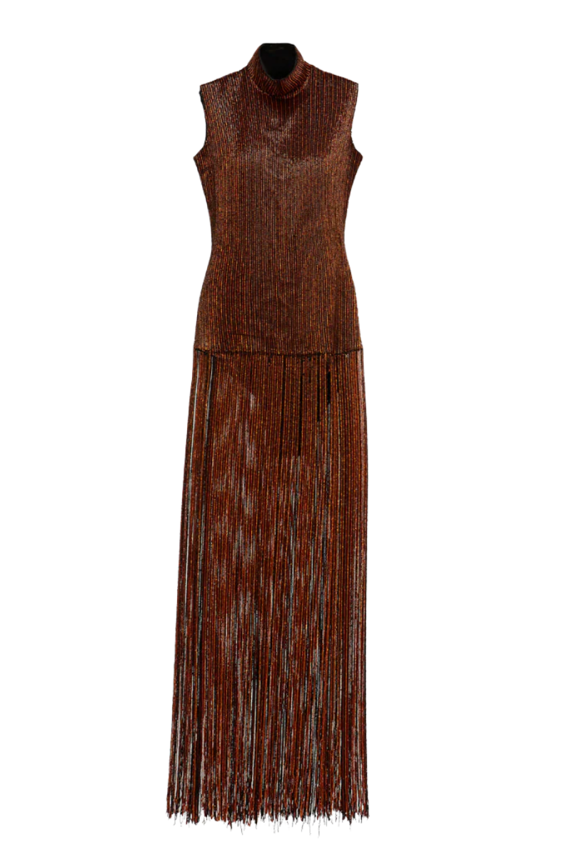 فستان إليس ذو الشراشيب باللون البني