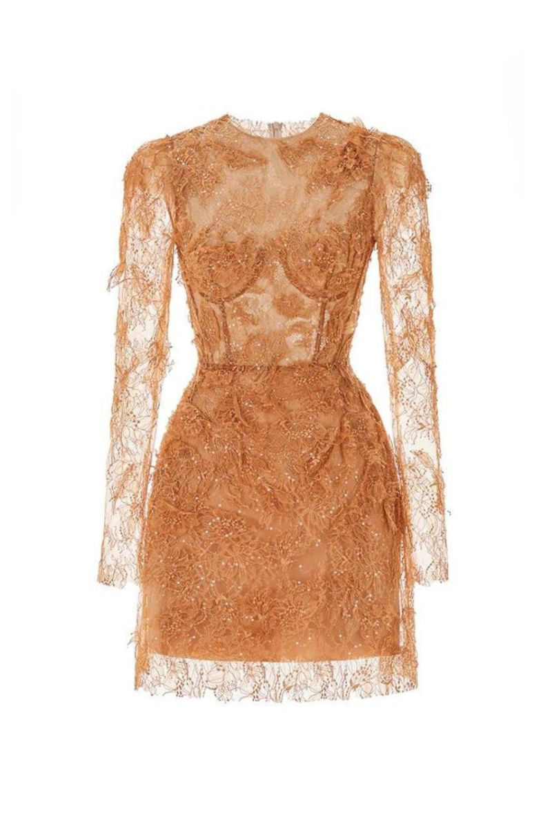 فستان ميني دانتيل مزيّن بالخرز الذهبي