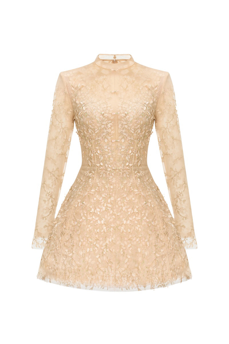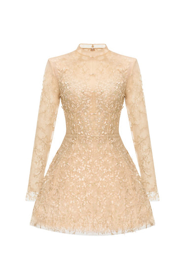 فستان قصير بأكمام طويلة وياقة عالية بألوان الباستيل
