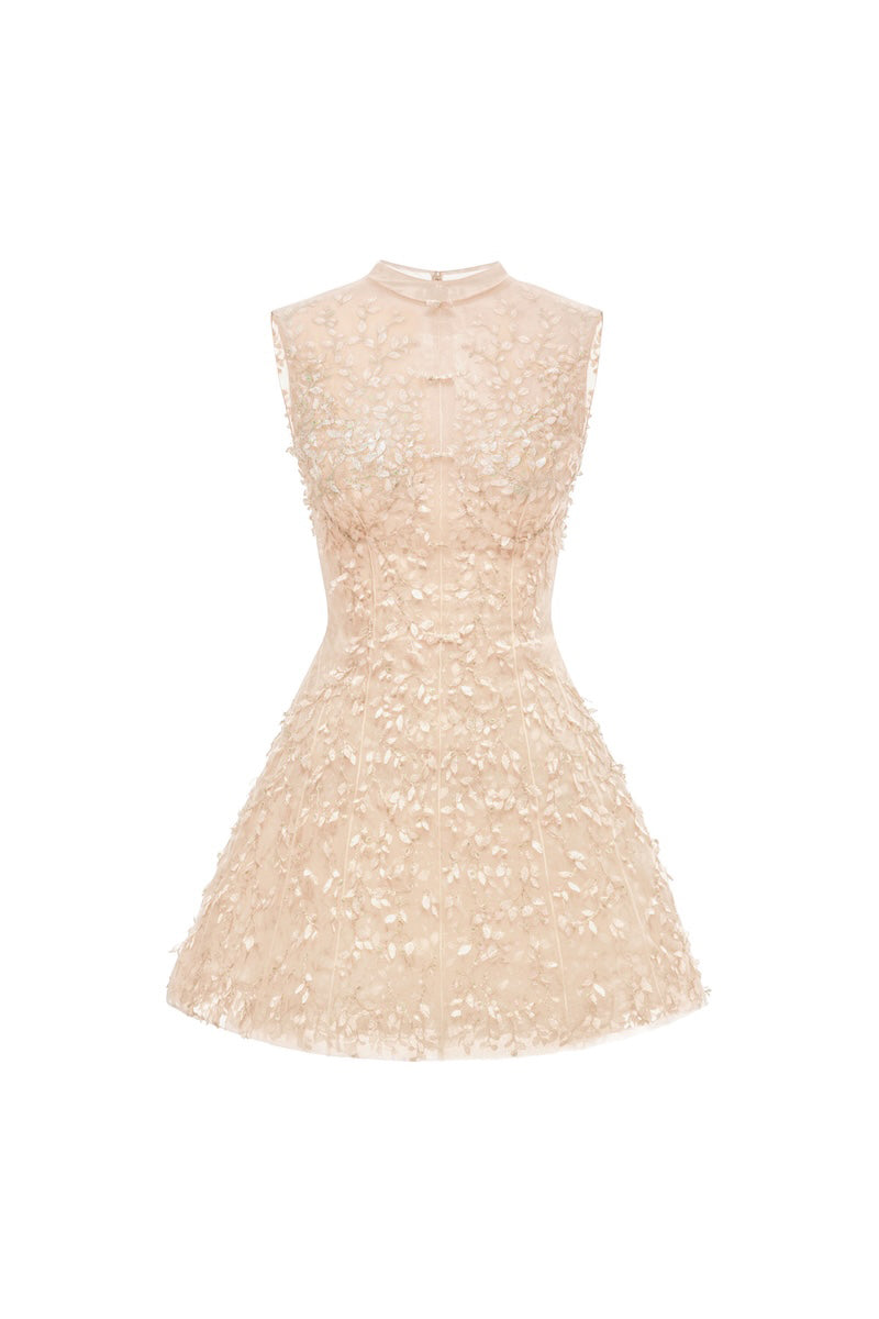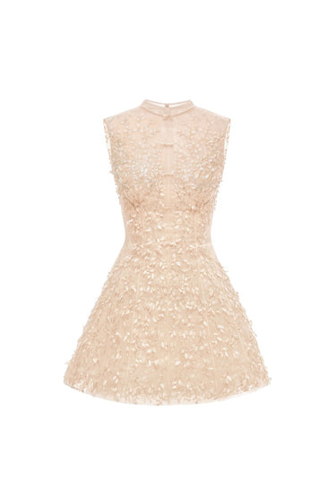 فستان قصير بدون أكمام بياقة عالية بألوان الباستيل
