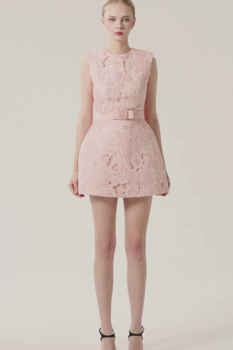 هذا الفستان الدانتيل متوسط الطول تحفة فنية آسرة. يُضفي الجزء العلوي الملائم والتنورة الواسعة، ذات الحجم الرقيق عند الوركين، مزيدًا من الطول على قوام الفستان، بينما يُحدد الحزام اللامع الخصر. يُضفي قماش التفتا الوردي الباستيل والدانتيل الزهري المصنوع يدويًا عمقًا على الفستان، ليُضفي عليه لمسة أنثوية أنيقة.