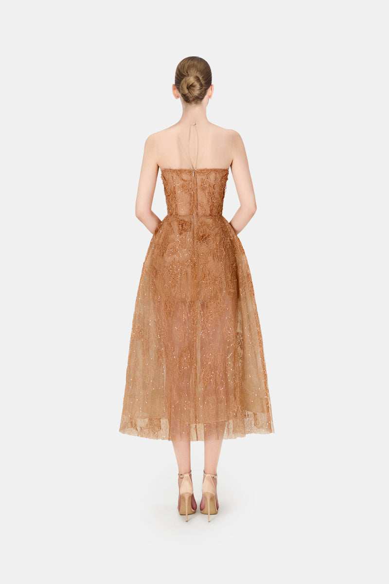 فستان دانتيل مطرز بالخرز العسلي