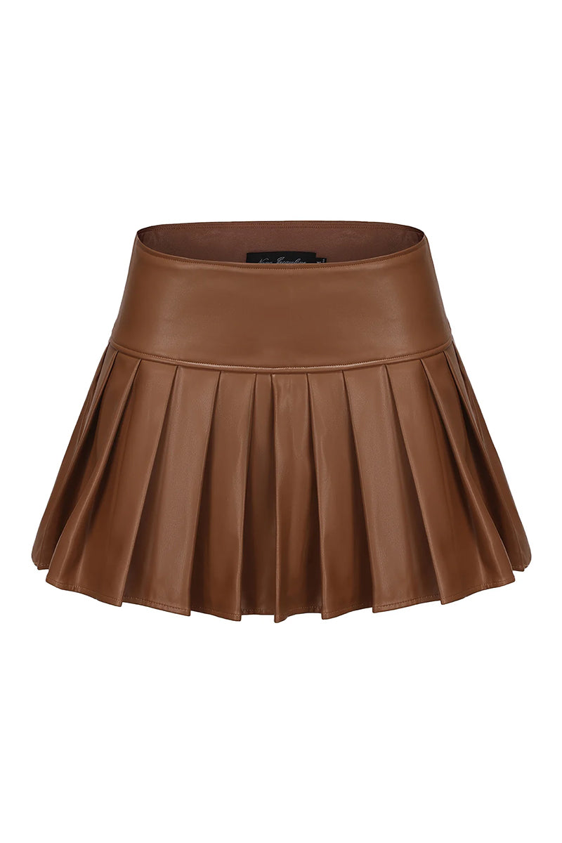 ارتقِ بخزانة ملابسك مع تنورة جينا المصنوعة من جلد صديق للبيئة لتمنحك ملمسًا ناعمًا ورقيقًا. توفر الثنيات المرنة انسيابية مريحة وغير رسمية دون أن تفقد شكلها، بينما يوفر السحاب ذو الفتحة الجانبية سهولة الارتداء. توفر السراويل الضيقة الداخلية تغطية آمنة منخفضة الارتفاع، مما يضمن لك الثقة طوال اليوم. بفضل خصرها الأنيق وأسلوب الحرم الجامعي الأمريكي الكلاسيكي، تعد هذه التنورة ضرورية لتصفيف متعدد الاستخدامات ورائع دون عناء.