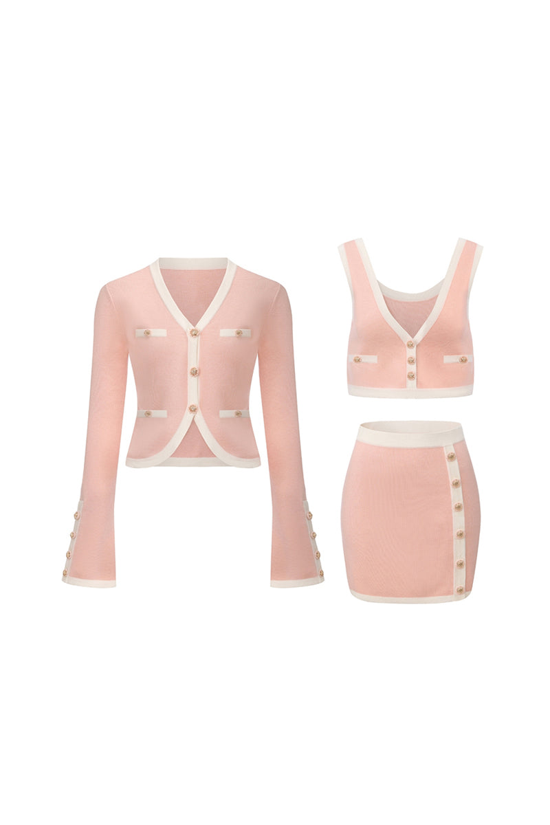 طقم ليسيت المحبوك باللون الوردي