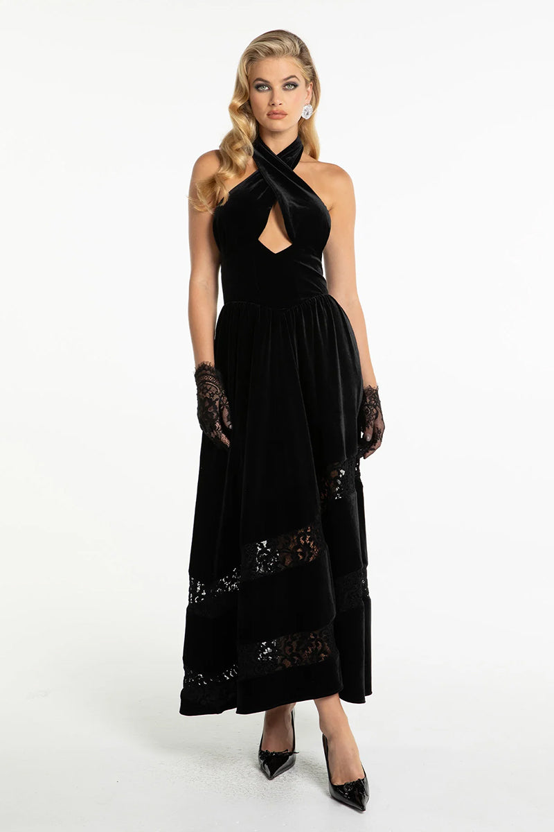 فستان ماكسين المخملي هو مزيج مذهل من الأناقة والتصميم الجريء. يتميز بفتحة رقبة متقاطعة وفتحات مجوفة تخلق صورة ظلية مذهلة، بينما يضيف مشبك الماس لمسة من الفخامة. يبرز الصدر المزركش والخصر المتعرج قوامك بشكل مثالي، ويتدفق إلى تنورة جذابة على شكل حرف A مع تفاصيل من الدانتيل المزخرف. يتميز هذا الفستان بسحاب خلفي لسهولة الارتداء وشريط مطاطي في الجزء العلوي لملاءمة آمنة، وهو مصمم ليكمل أشكال الجسم المختلفة. مع تفاصيله المتطورة وقصته المريحة، يعد فستان ماكسين مثاليًا للتعبير عن نفسك في أي مناسبة.