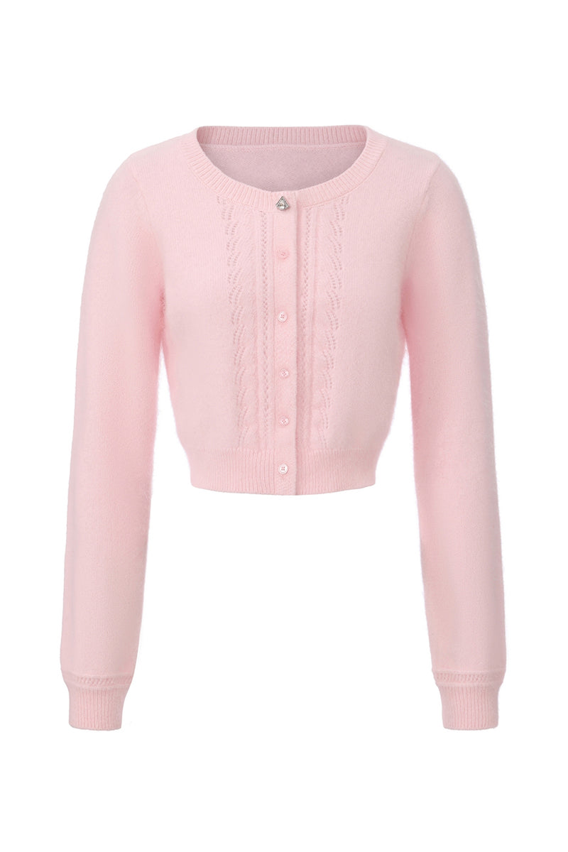 - التصميم: كارديجان كلاسيكي مزين بزر ماسي مميز من متحف اللوفر وإغلاق مخفي بكباسات