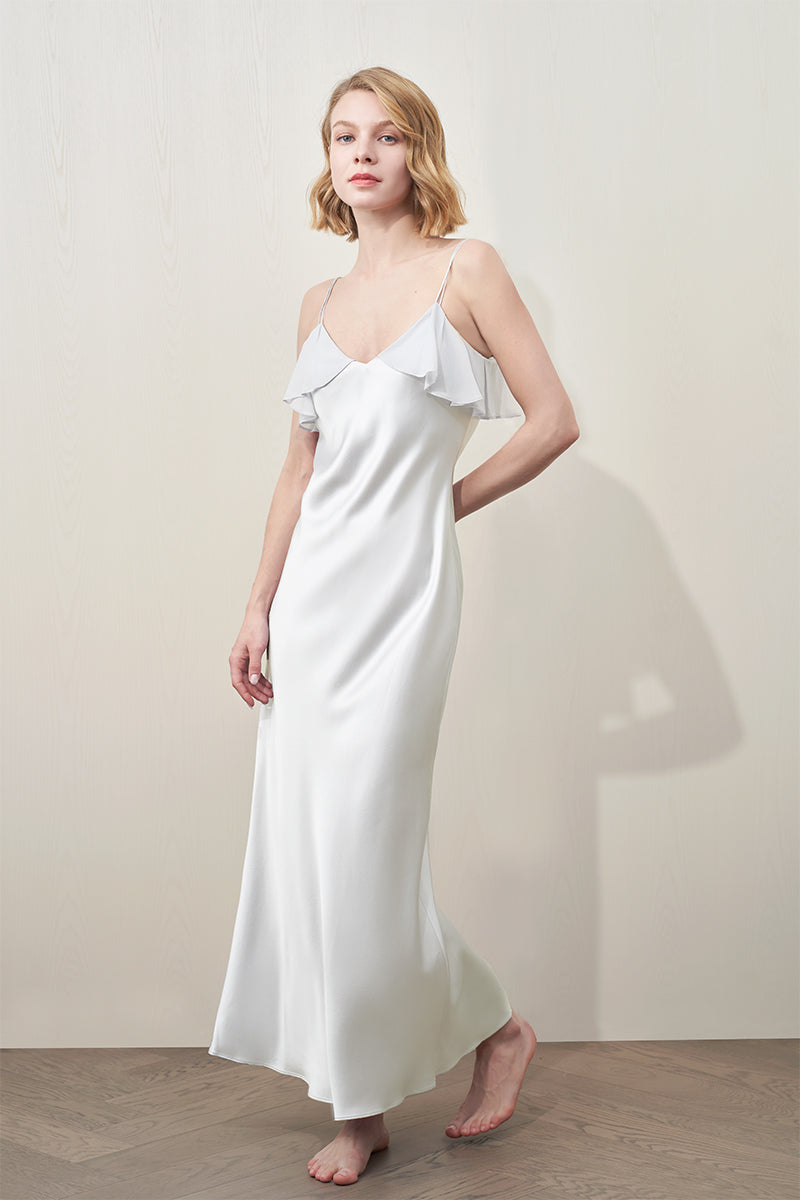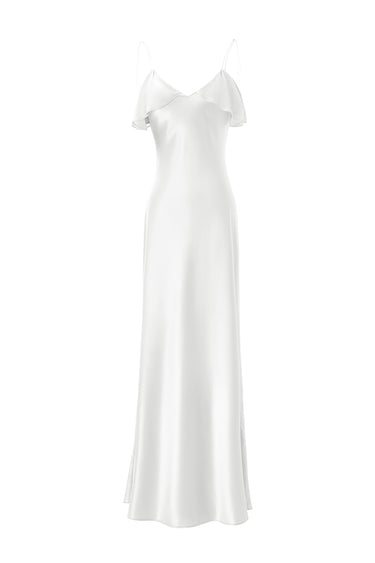 فستان نوم طويل من الحرير من أورورا باللون الأبيض