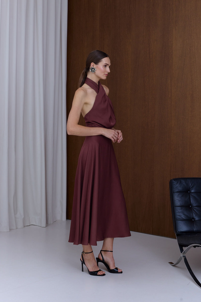 فستان HEIDI Burgundy Midi مصنوع من قماش قابل للتنفس وعالي الجودة مع بطانة كاملة من الفسكوز، مما يسمح لك بالتحرك والرقص والاحتفال براحة تامة - مع الحفاظ على مظهر لا ينسى على الإطلاق.