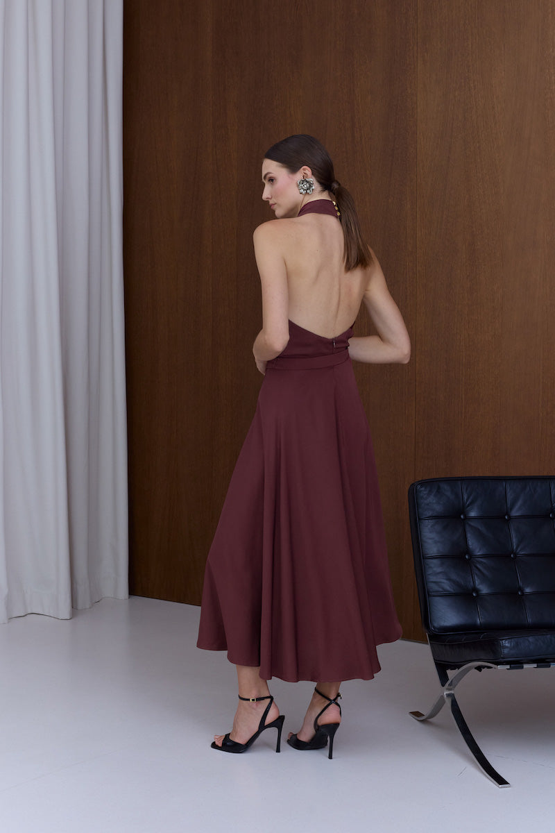 فستان هايدي باللون العنابي – جمال متدفق مع قلب جريء.