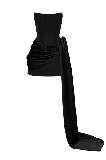 قطعة مميزة من المجموعة: فستان كورسيه مع ذيل قابل للفصل وتعديل طوله. يتميز هذا الفستان الأنيق والملائم للجسم بتطريز جريء، مما يوفر تنوعًا في الاستخدام - ذيل أنيق منسدل لحفل الزفاف، ونسخة أقصر لحفل استقبال أنيق على طراز الكوكتيل.