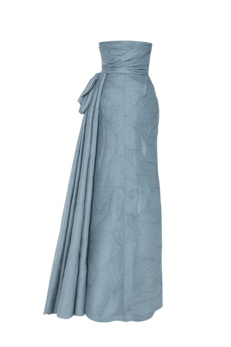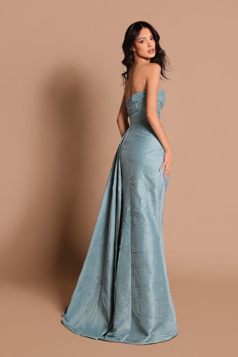- فستان من التفتا المتفتت مع فيونكة من الخرز وشق