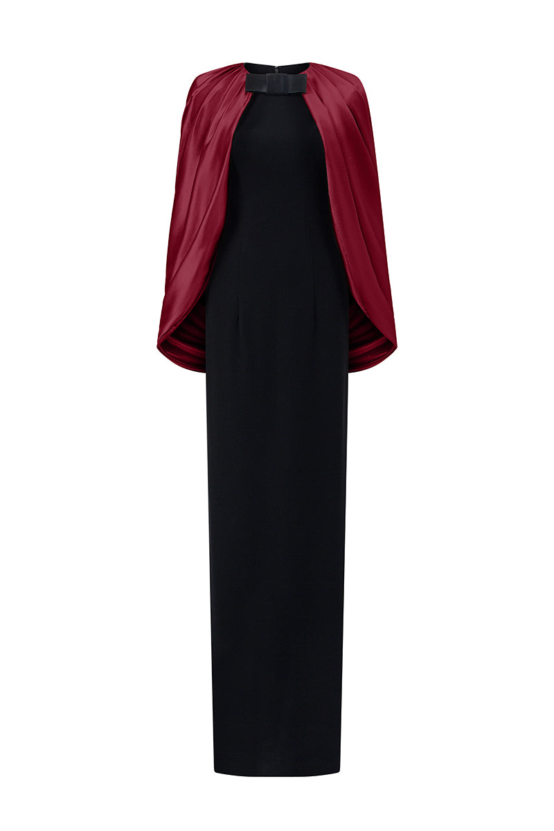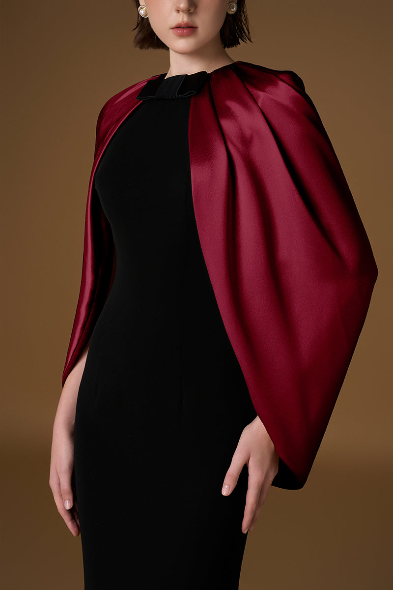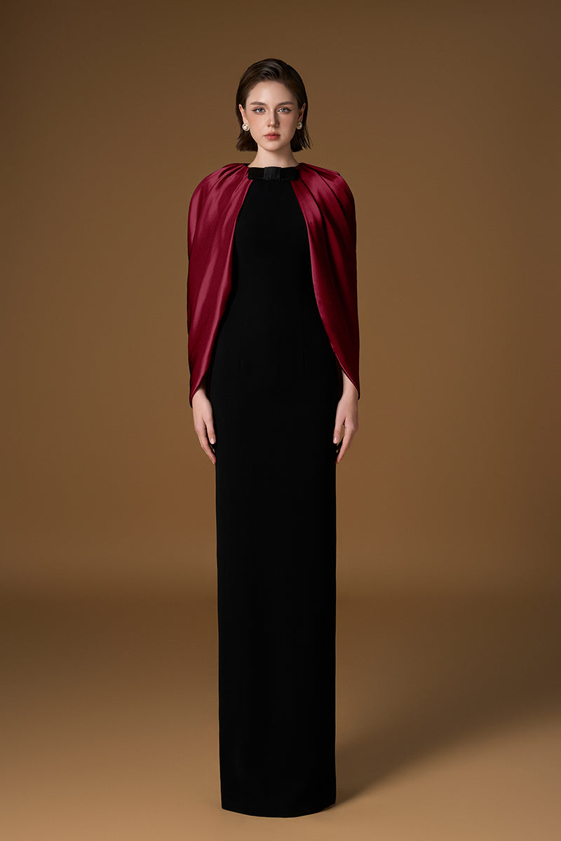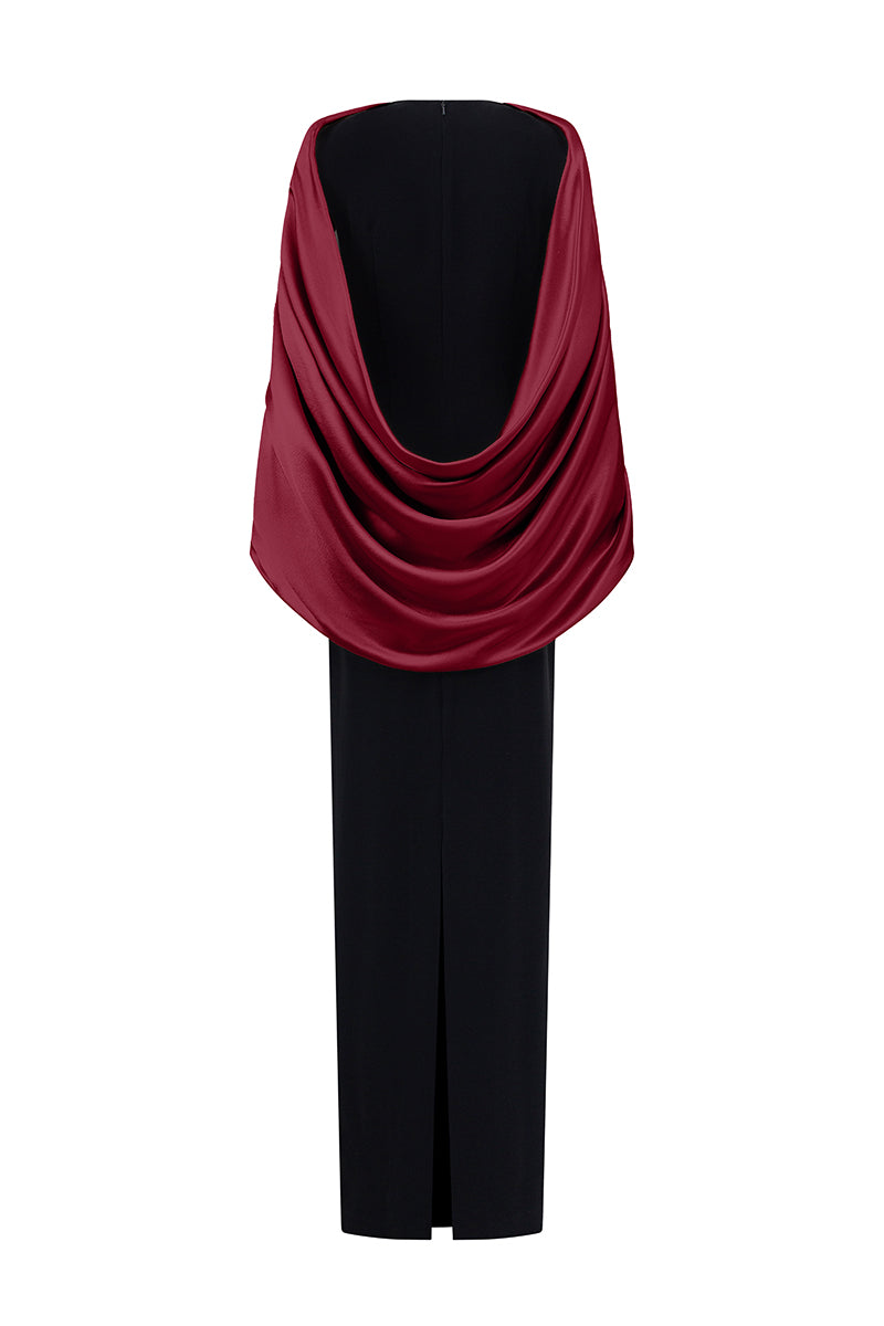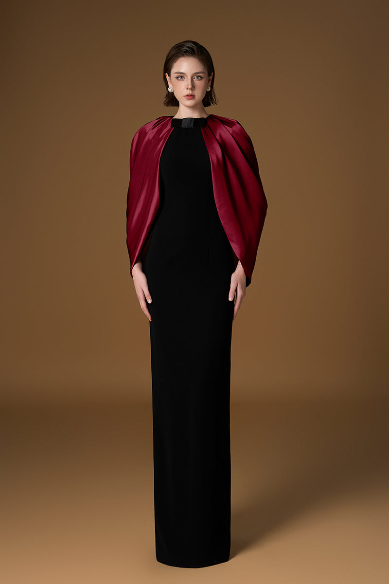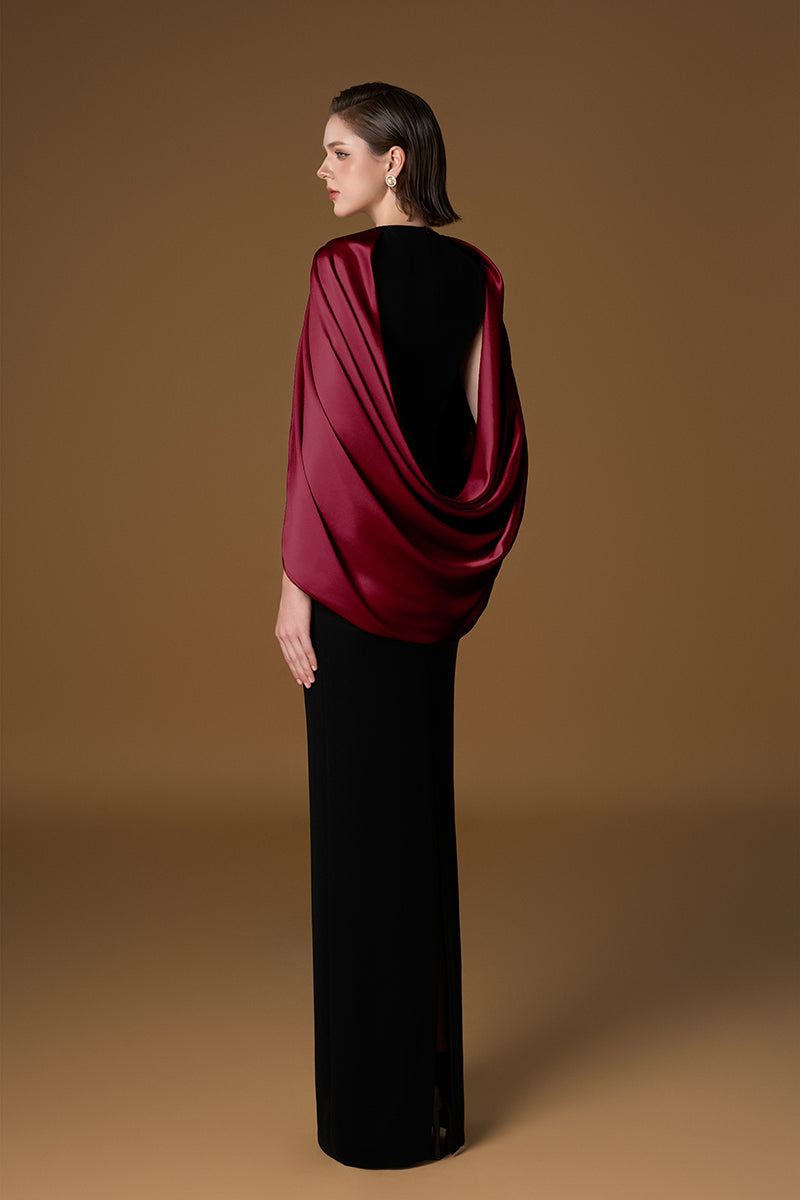 فستان مبطن بالحرير الساتان اللامع باللونين الأسود والبورغندي