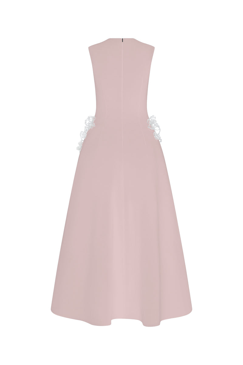 فستان ميدي واسع بدون أكمام من قماش الكريب البوليستر