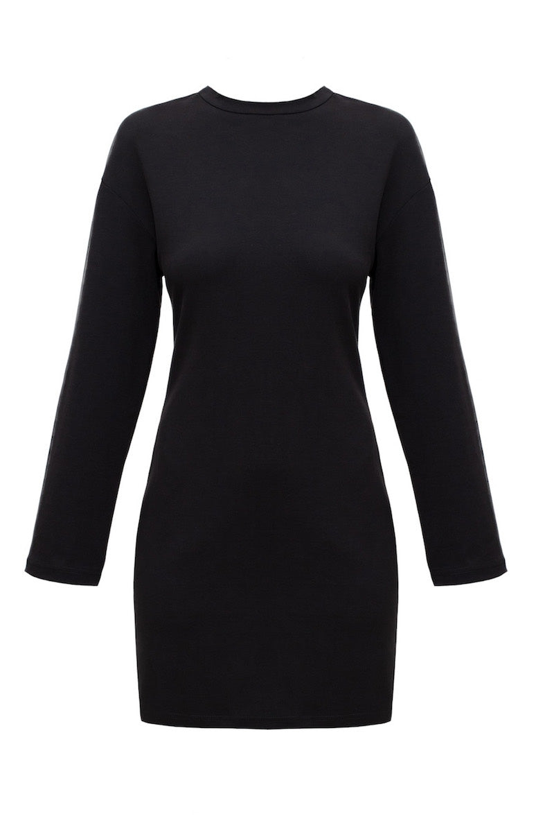 فستان سورين قصير من الجيرسي بأكمام طويلة باللون الأسود