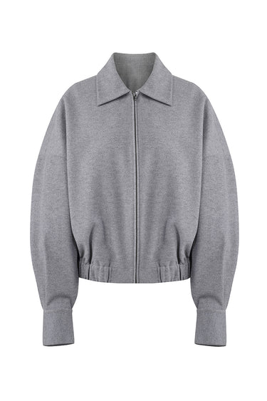 - يتميز بسحاب كامل الطول، وياقة واسعة، وحاشية وأساور مرنة