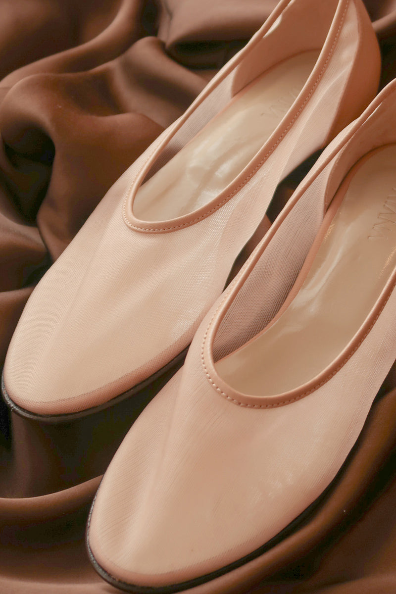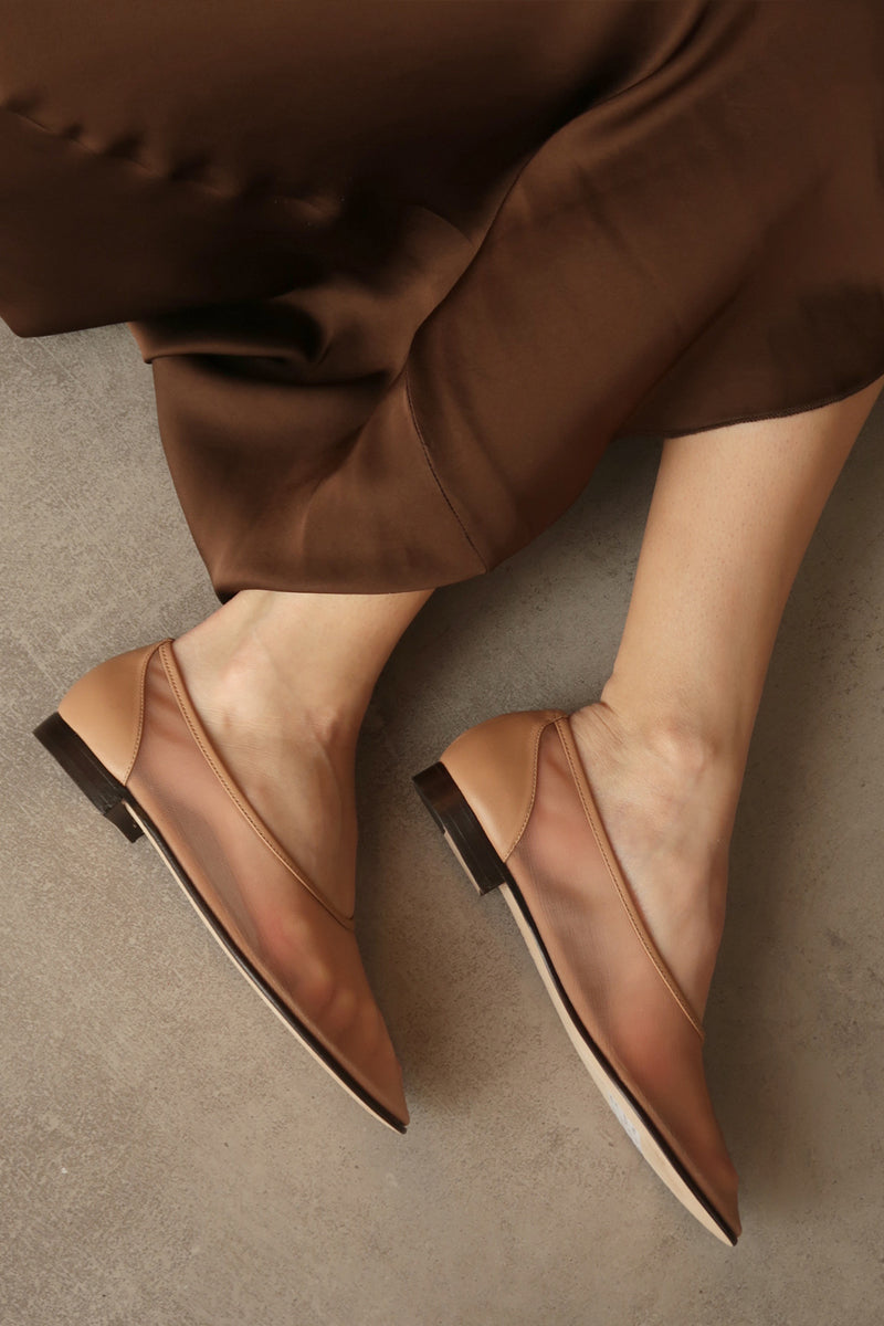 راقصة الباليه الشبكية من جلد نابا بني فاتح