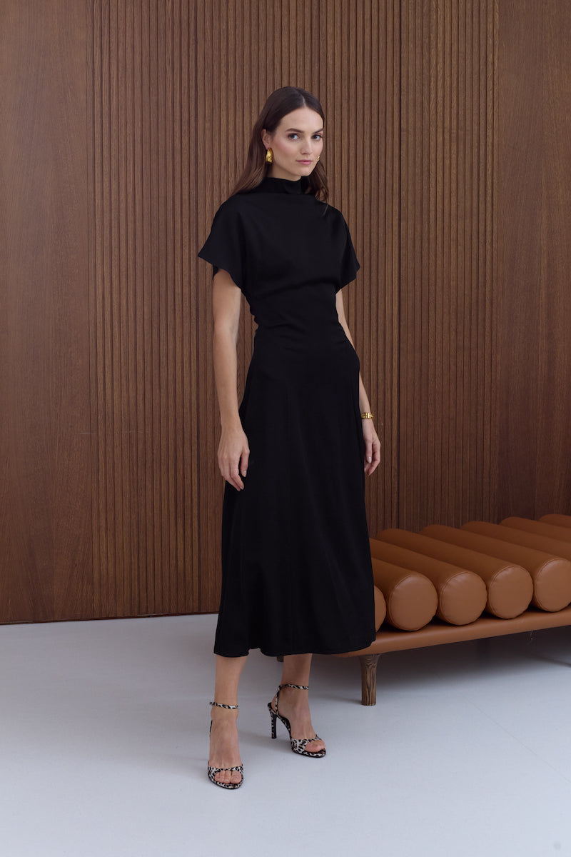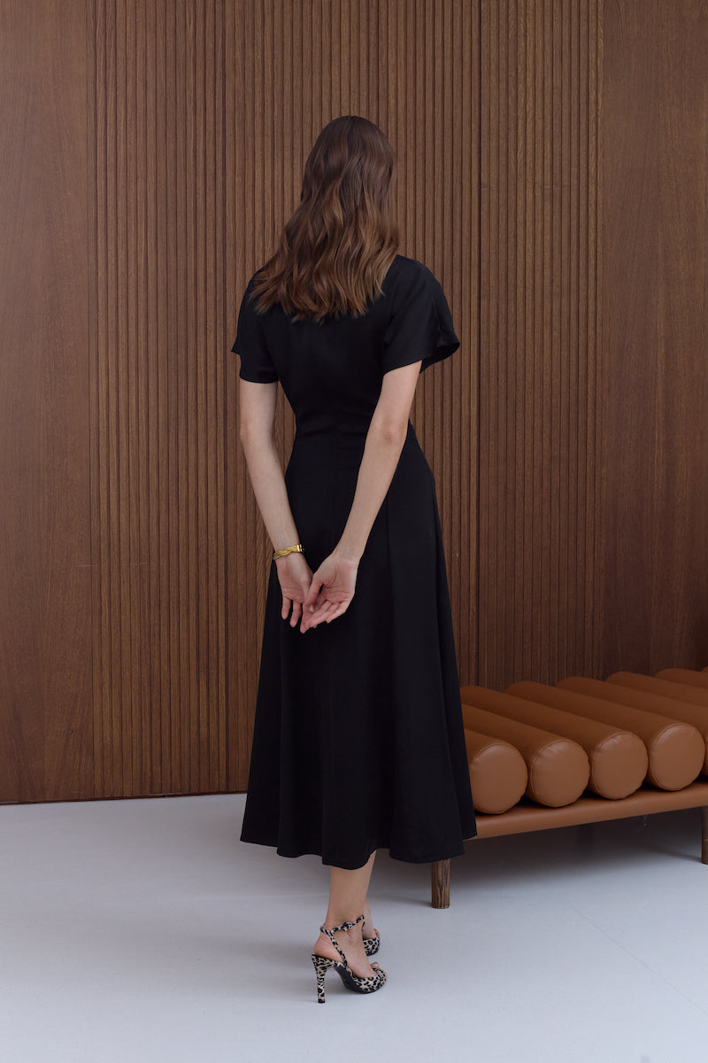 هناك الأناقة، ثم هناك TORI - فستان أسود متوسط ​​الطول خالٍ من العيوب مصمم لأولئك الذين يتحركون بثقة هادئة.