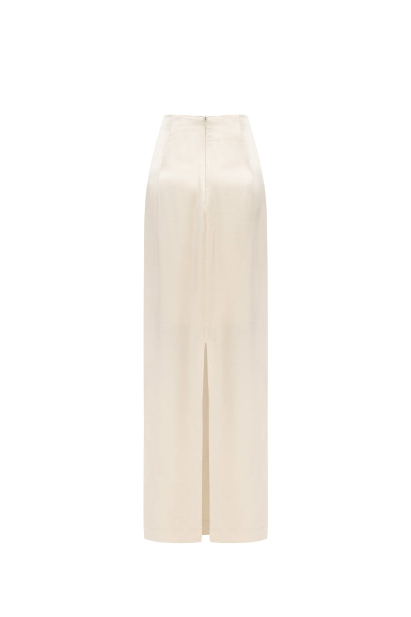تنورة ماكسي أنيقة مصنوعة يدوياً في أوكرانيا، تتميز بطولها الأنيق الذي يصل إلى الكاحل وإغلاقها بسحاب خلفي، مما يجعلها مثالية لسوق المنتجات الفاخرة. كما تحتوي على فتحة تهوية في منتصف الظهر لمزيد من العملية.