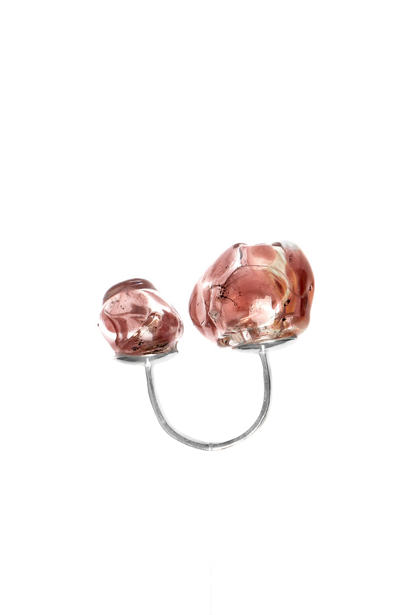 الفضة الاسترلينية المعاد تدويرها والزجاج البورسليكات المنفوخ يدويًا.