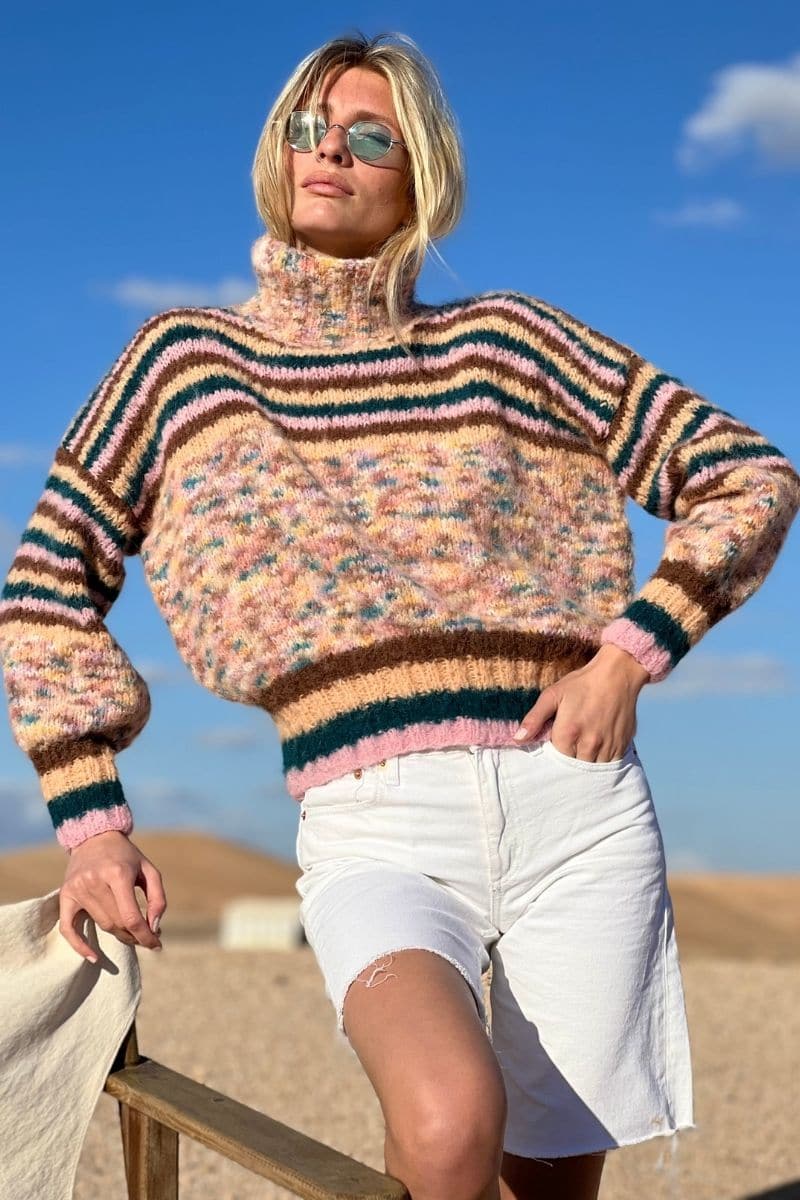 سترة دودو المذهلة ذات الرقبة العالية المخططة، تعانق بالقرب من الخصر والمعصمين بتصميمها الجذاب.
