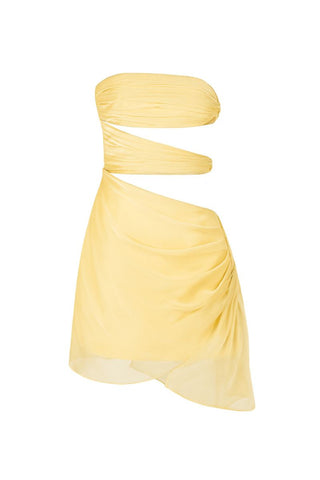 فستان شيفون قصير من 3 قيراط باللون الأصفر الستريني
