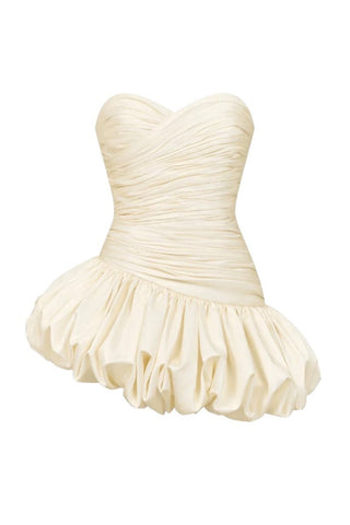 صُمم هذا الفستان الأبيض العاجي القصير بإتقان، حيث يضفي صديريه الرائع المصنوع يدويًا لمسة درامية ومنحوتة على شكله الضخم. صُنع بعظم عند الصديري ويتميز بسحاب جانبي غير مرئي، ويتناسب بشكل مثالي مع أحذية بكعب عالٍ مدببة عتيقة. مصنوع يدويًا في تايلاند.
