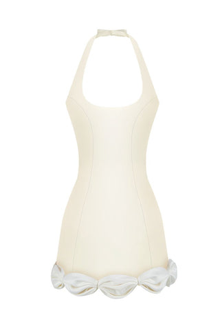 فستان قصير على شكل كعكة باللون الأصفر الفاتح