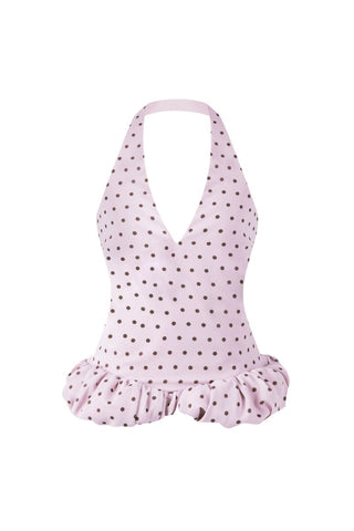- ياقة هالتر مع إغلاق بأزرار خلفية