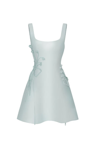 - أقواس مائلة مخيطة يدويًا وتفاصيل زهرية أعلى الثوب