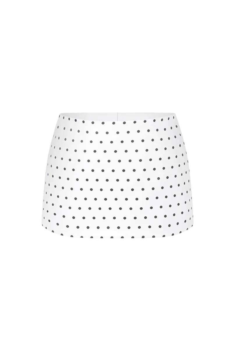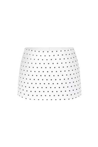 تنورة قصيرة منخفضة الخصر بلون أبيض كريمي منقط