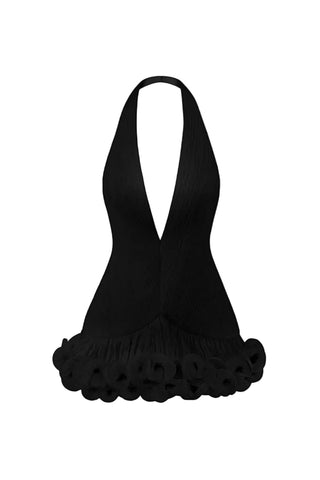 فستان قصير أسود بياقة على شكل حرف v من تصميم إم إس توتو