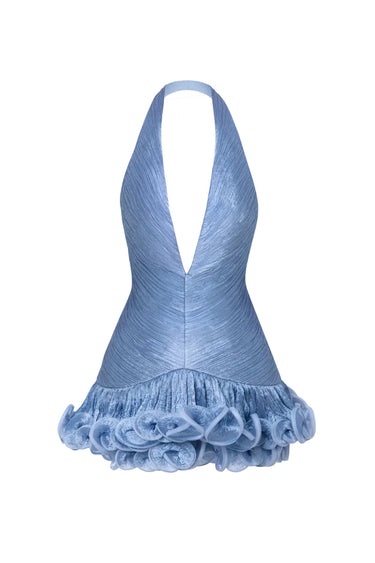 فستان قصير بياقة على شكل حرف v من تصميم إم إس توتو باللون الأزرق الباهت