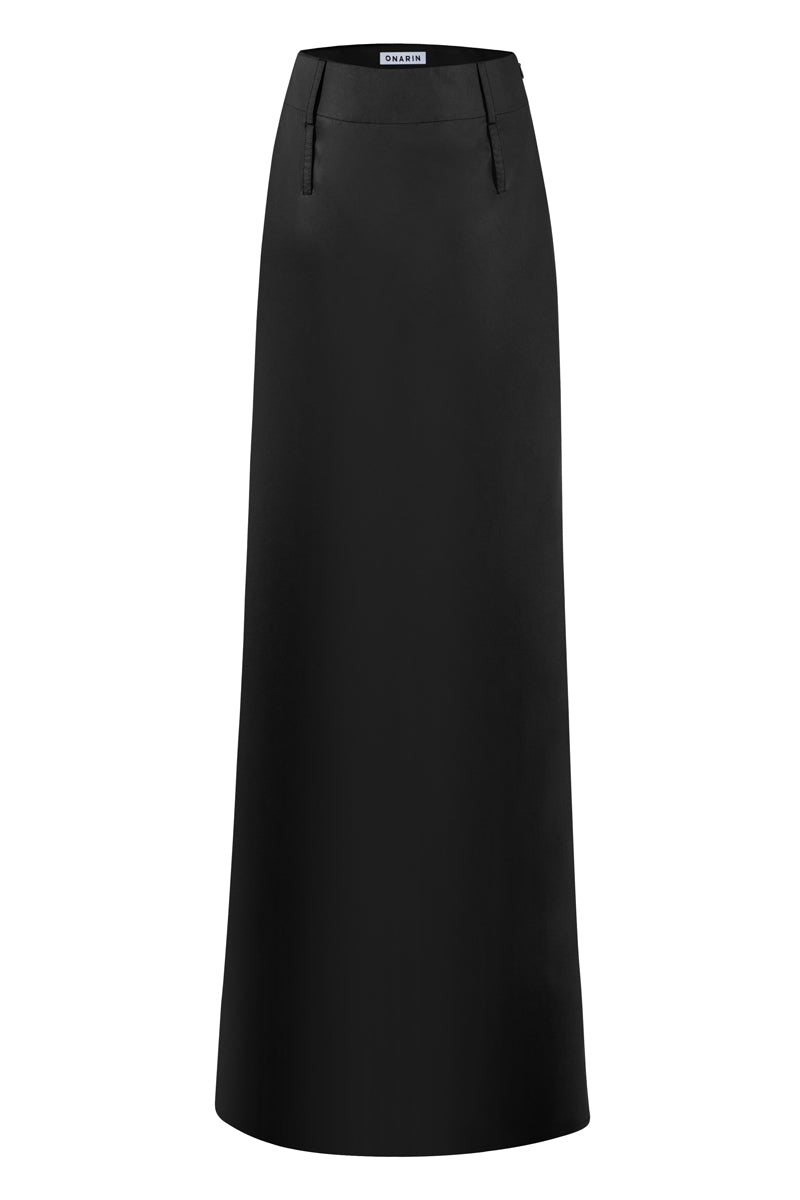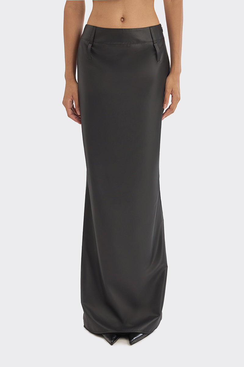 تنورة ماكسي سوداء بخصر منخفض بتصميم حلزوني