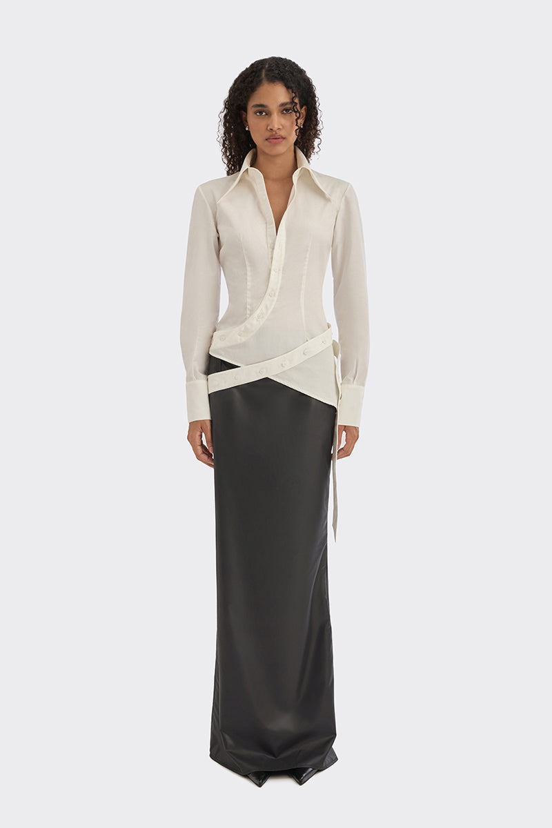 - ربطة خصر بأزرار تعكس حركة حلزونية
