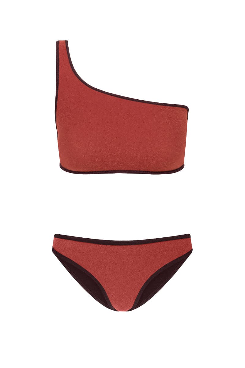 يتميز هذا البيكيني الأنيق ذو الكتف الواحد برباط متباين ويمكن عكسه بالكامل، مما يمنحك خيار الاستمتاع بقمتين في قطعة واحدة!