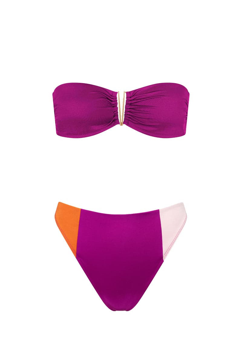 بلوزة ذات كتلة ملونة بدون حمالات وبيكيني قصير