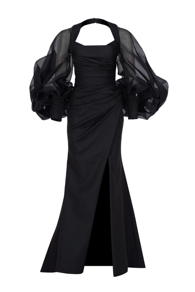 فستان إلزارا أسود بأكمام طويلة