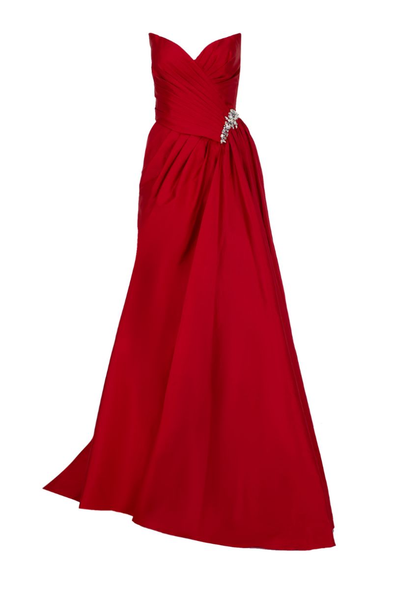 هيلدا ثوب التفتا الأحمر بدون حمالات
