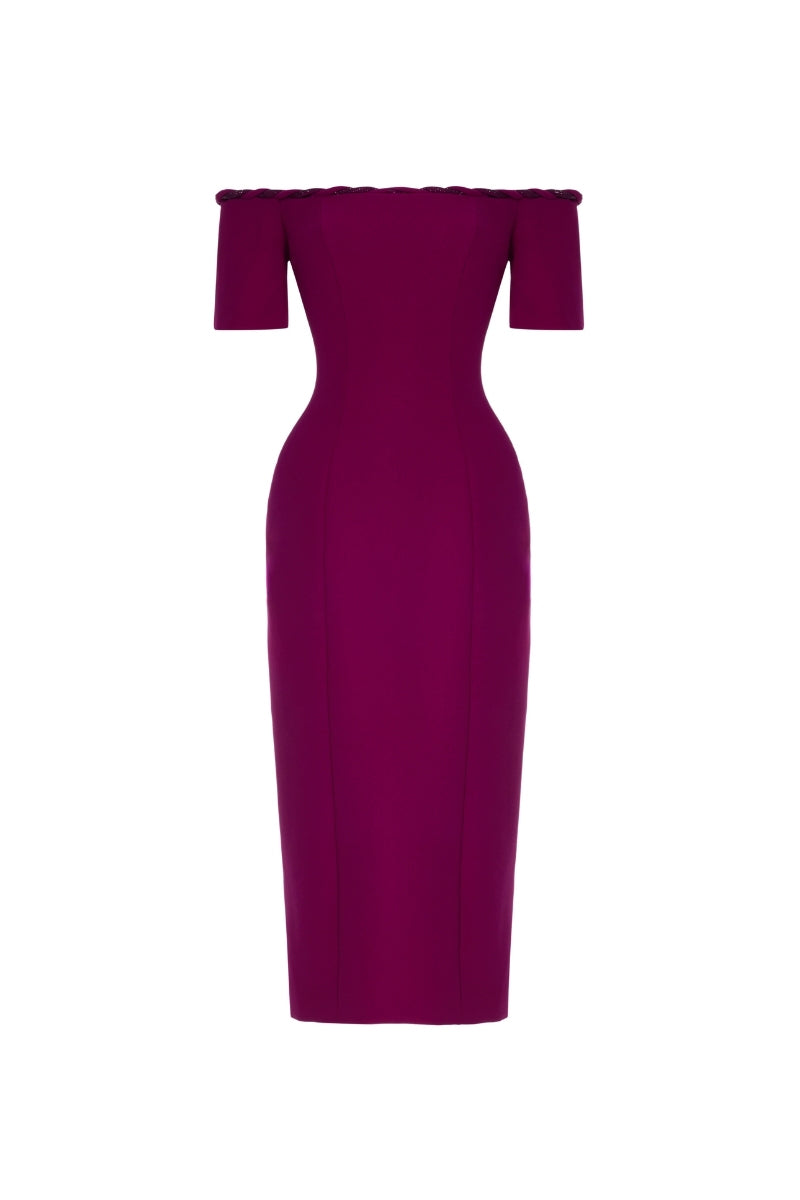 - فستان قصير الأكمام من قماش الكريب