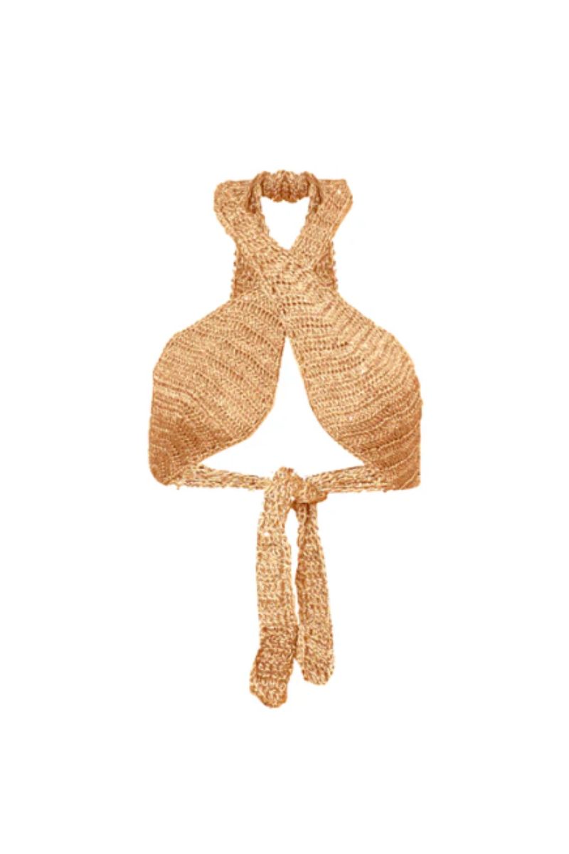بلوزة ميرلوزا كروشيه ذهبية بالترتر