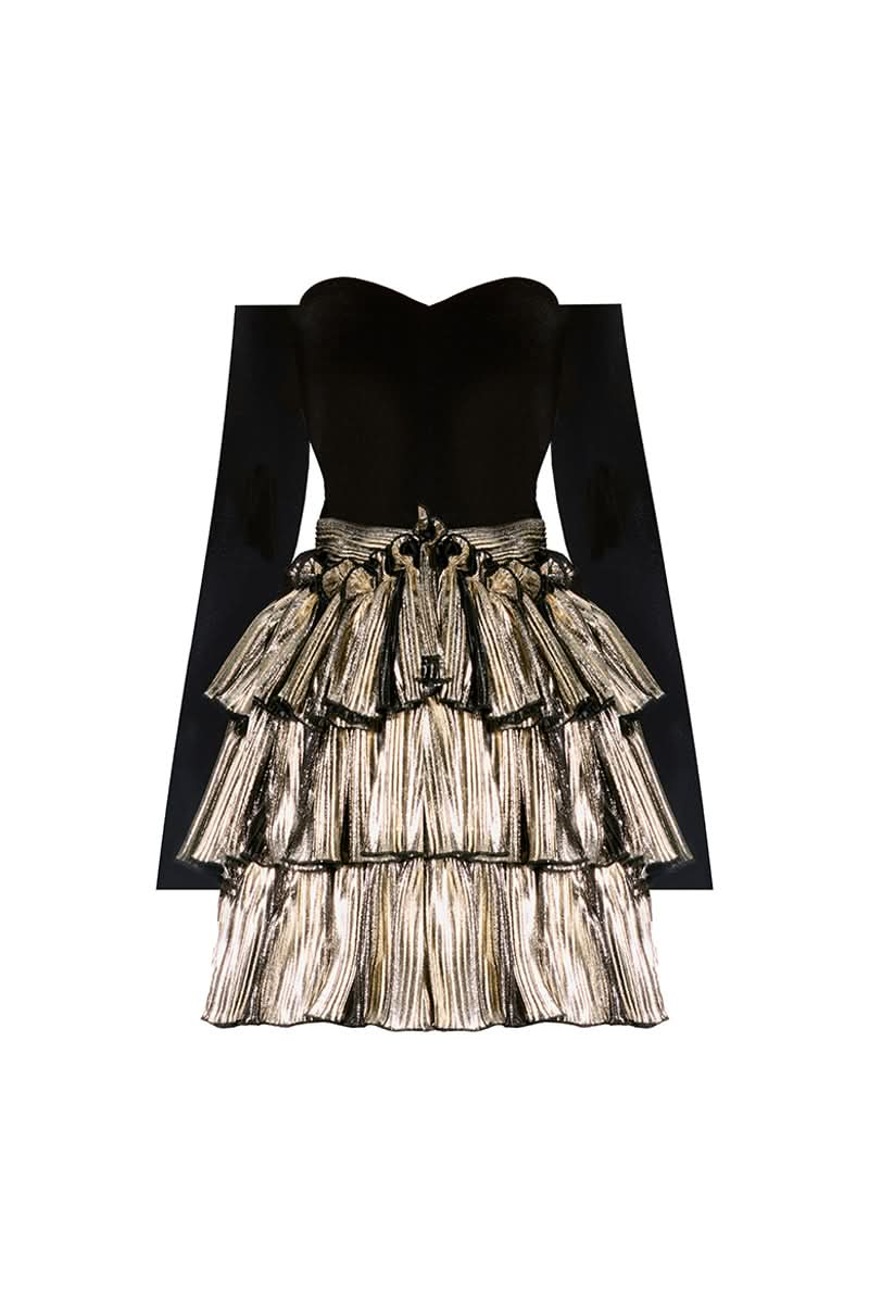 - فستان قصير متعدد الطبقات مع كشكشة